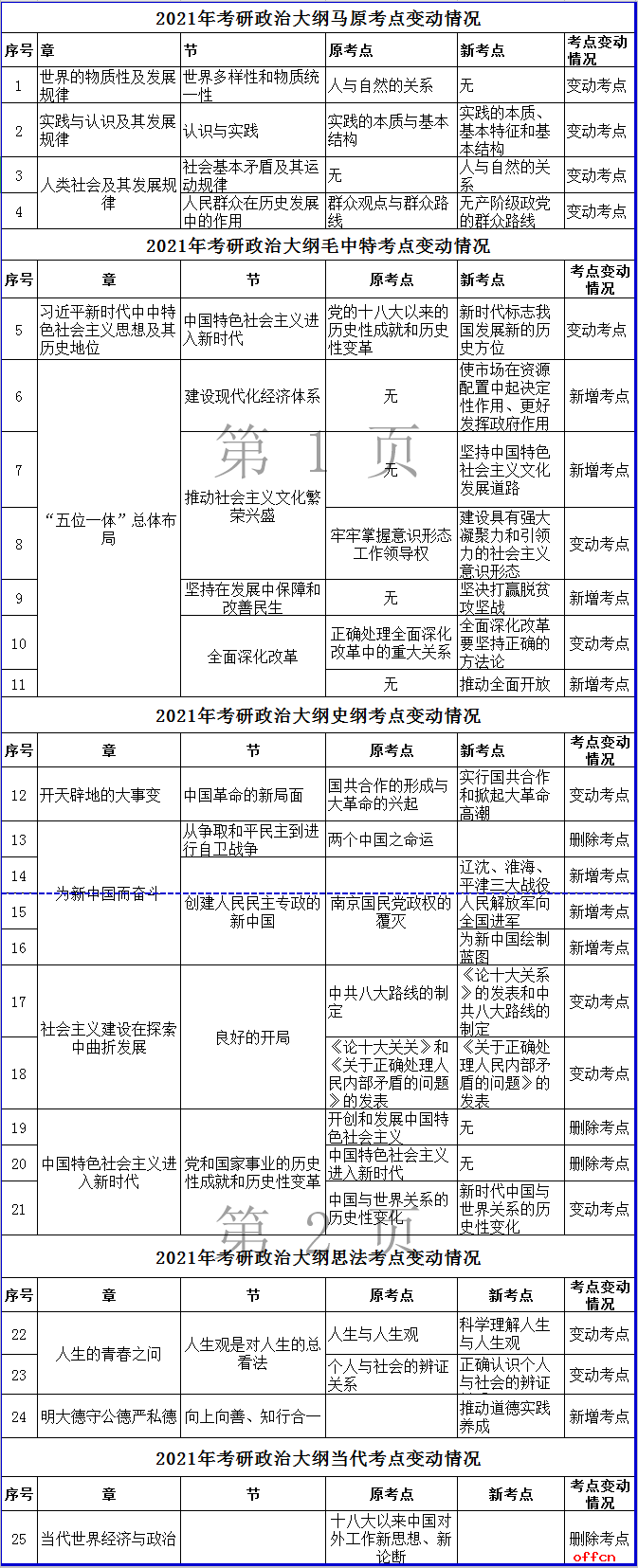 2021考研政治大纲对比变化
