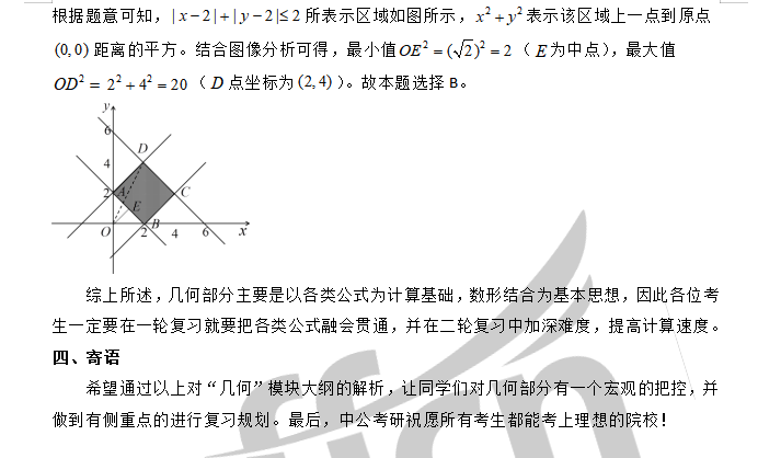 中公考研初数教研室研究近几年的管理类联考初等数学考试大纲,对于考纲有着独特的见解。下面针对21考纲中出现的“几何”板块做出详细解读,希望能够帮助到广大考生。