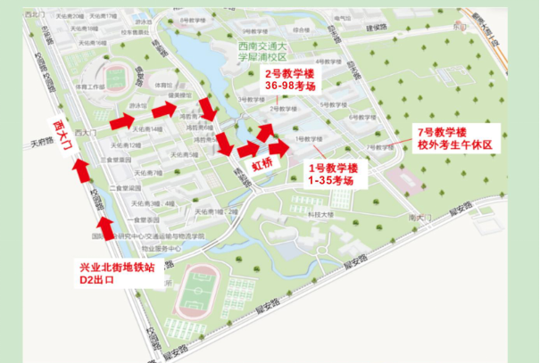 图1 考生入场通道示意图(考试期间除红色箭头外,其余通道均封闭)