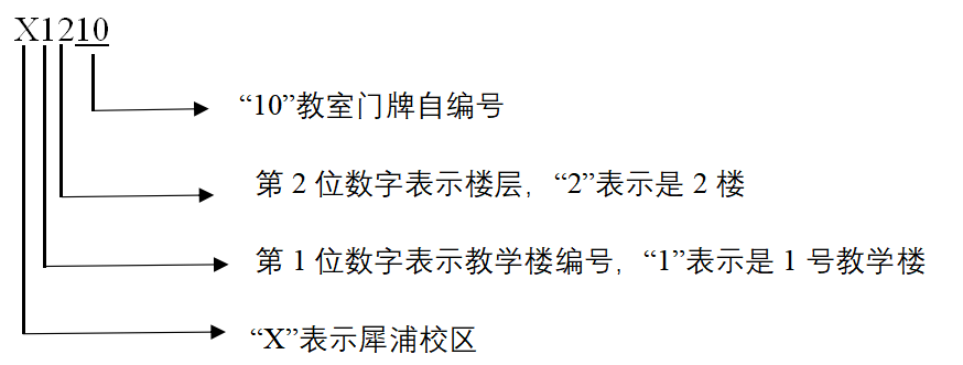 5. 教室号示例:我校犀浦校区教室号用4位数字标示,本考点考场所用教室示例如下: