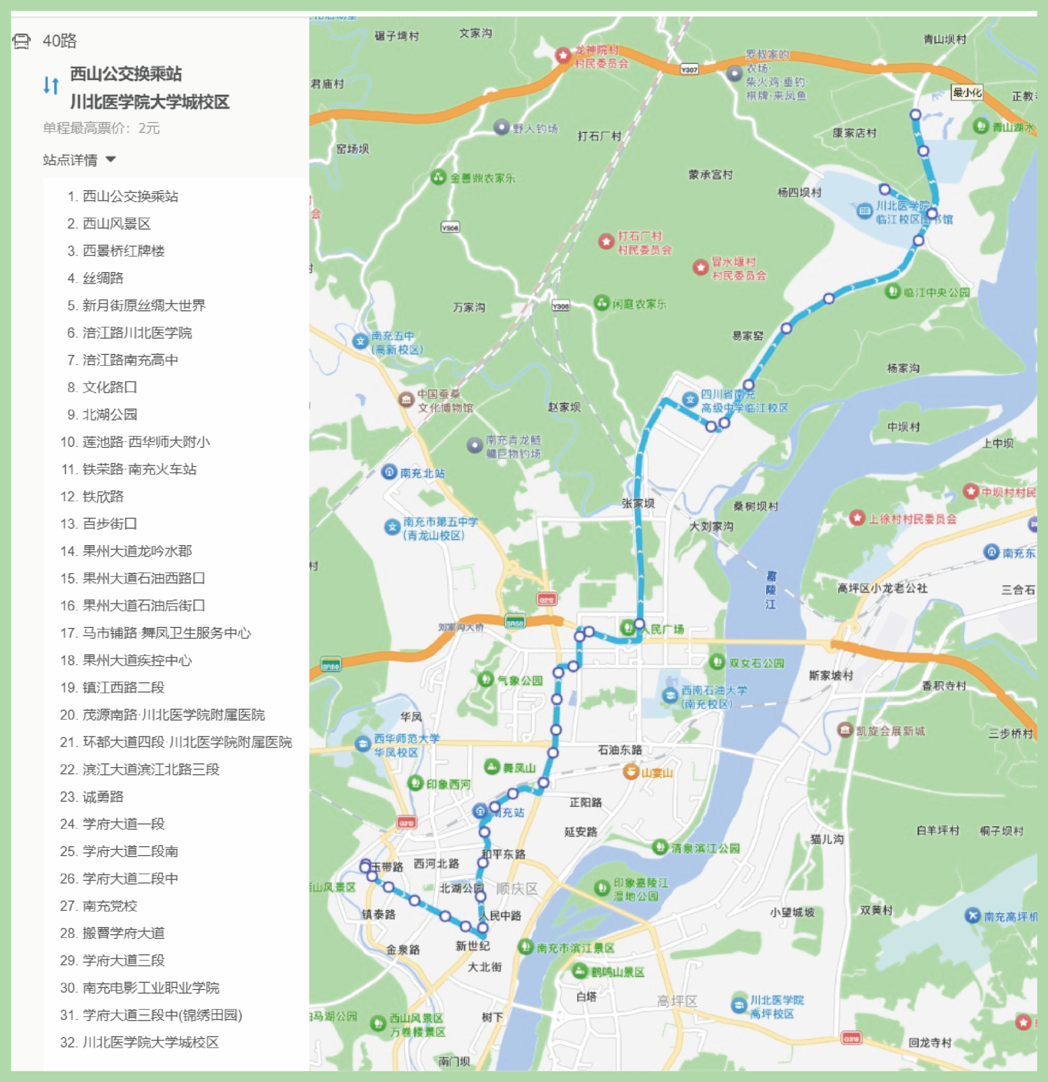 2.为保障考生便捷出行,南充市公交公司已优化调整考点周边公交线路,其中40路、5路公交直达我校临江校区,具体班次及站点信息如下: