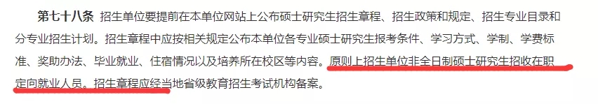 信息公开公示:明确规定招生单位非日制硕士研究生招收在职定向就业人员。