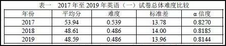 2019考研英语真题国平均分情况如下:英语一48.59分,难度系数0.486英语二52.66分 难度系数0.5272019考研英语一抽取了326936名考生的试卷作统计分析,结果如下: