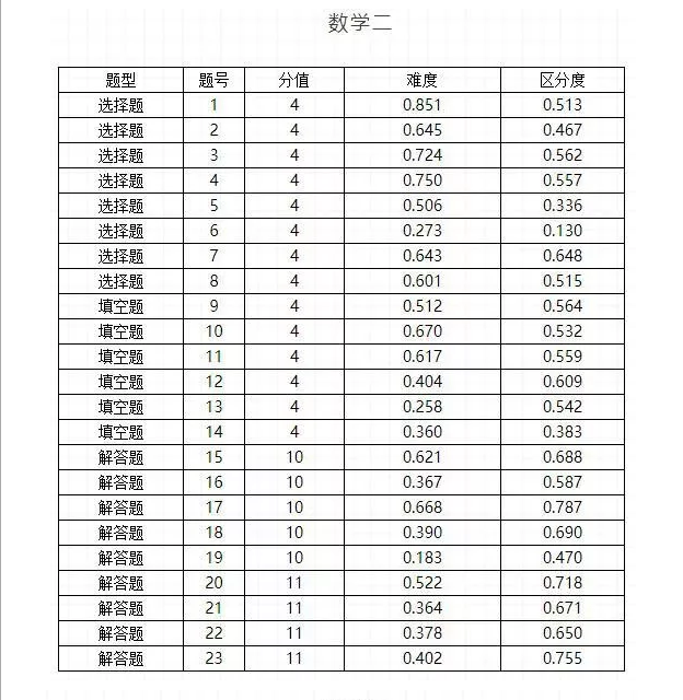 英语二的结果分析与英语一类似,只不过试卷难度增加了一丢丢,阅读理解难度与前两年基本持平,翻译和小作文难度要大一些。