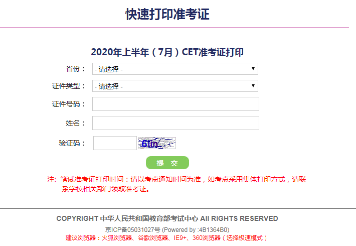 原标题:2020年上半年(7月)CET准考证打印