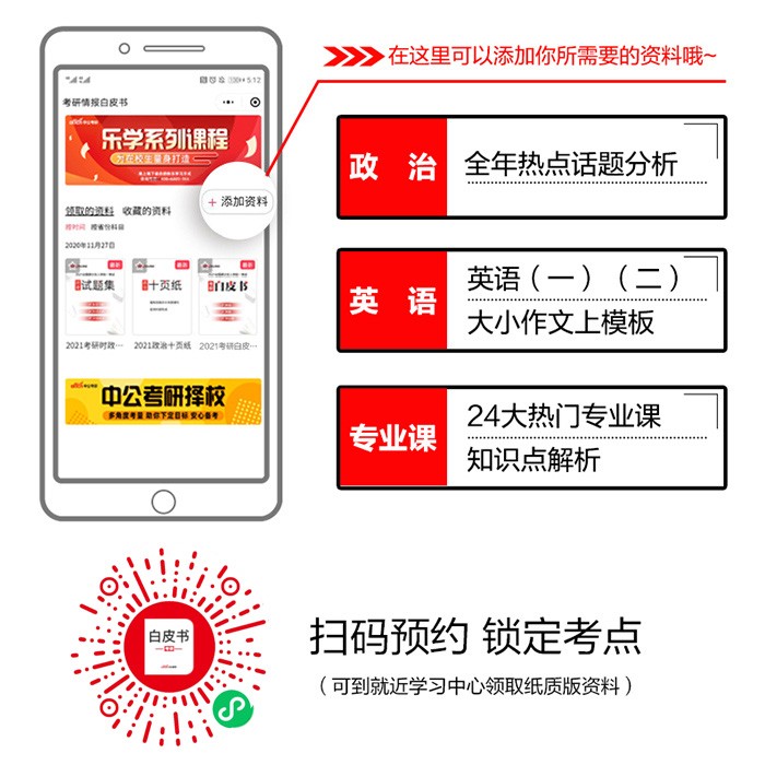 《考前白皮书》是由中公考研研究院精心研发,浓缩了政英等公共课以及24门专业课重要考点,关注中公考研的小伙伴应该都感受过《考前白皮书》神助攻的威力,一直是考研儿的考前好搭档!今年的考研白皮书更是强势升级,干货满满!