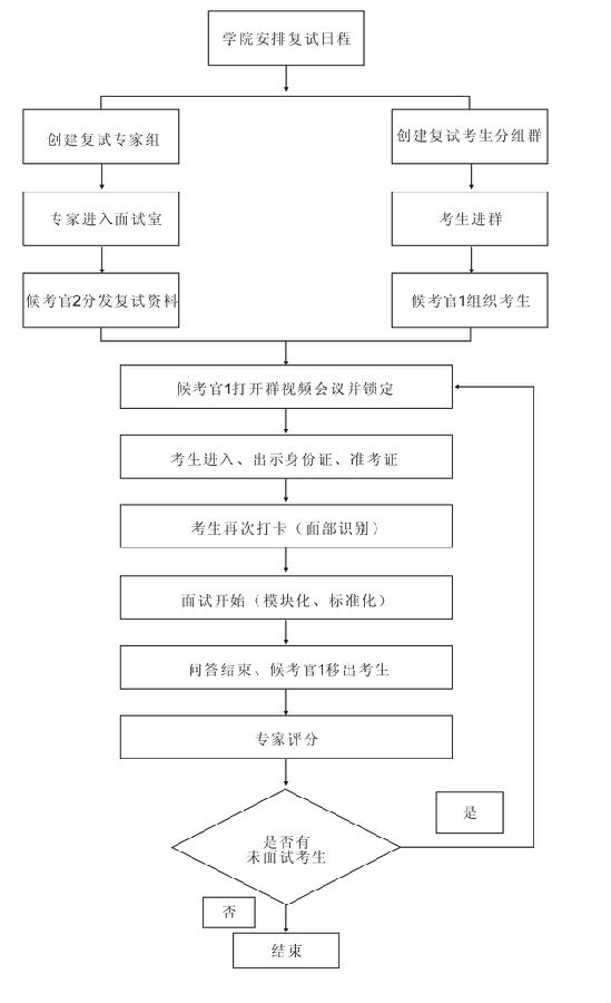 6.落实考生复试准备。在正式复试前,开展复试方式的宣传教育,告知考生复试流程和操作方法。学院安排专人确认考生复试环境,测试复试流程,确定相关软硬件达到复试要求。