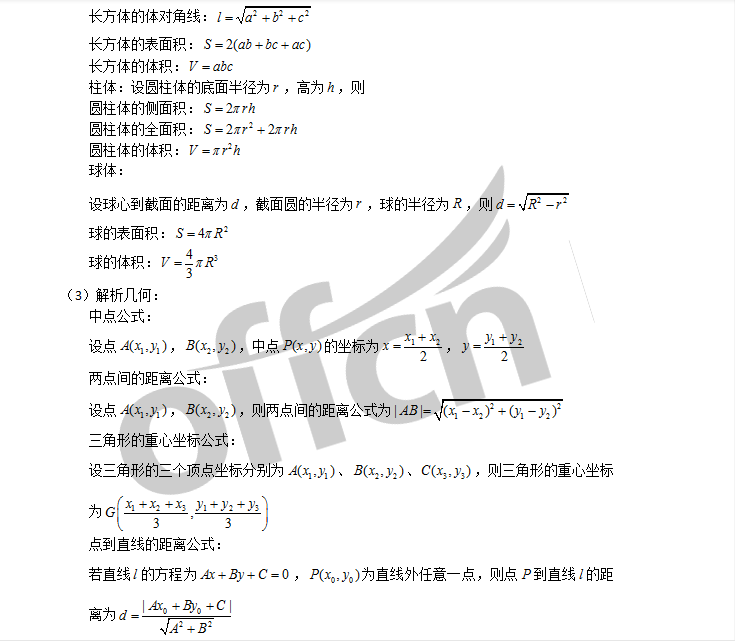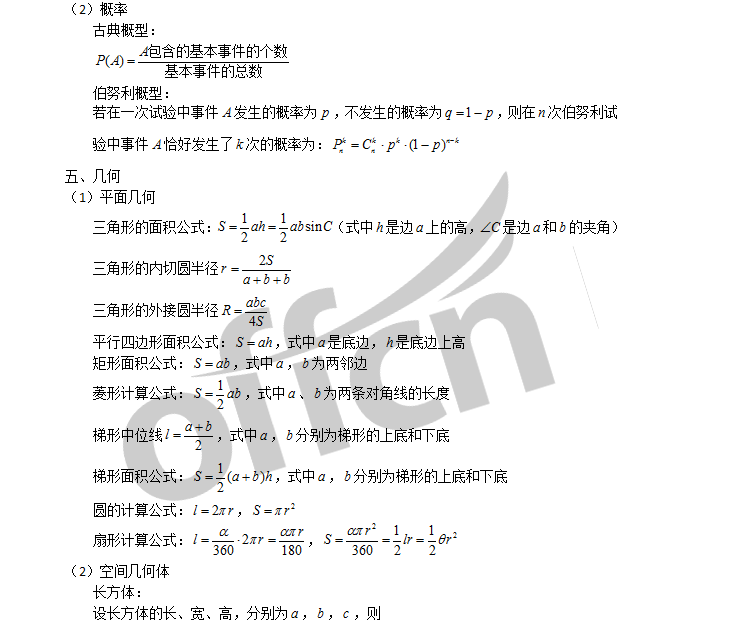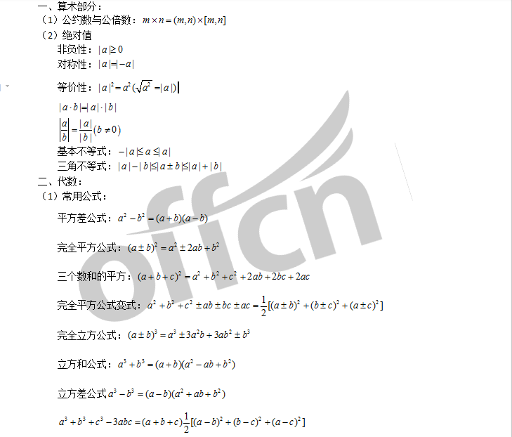 您所在的位置:四川中公考研 > 备考资料 > 考研数学 > 20考研数学,考研之初等数学常用公式大全