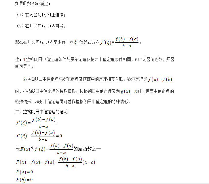 一、拉格朗日中值定理的内容