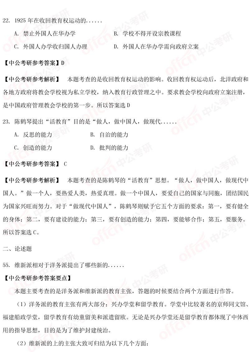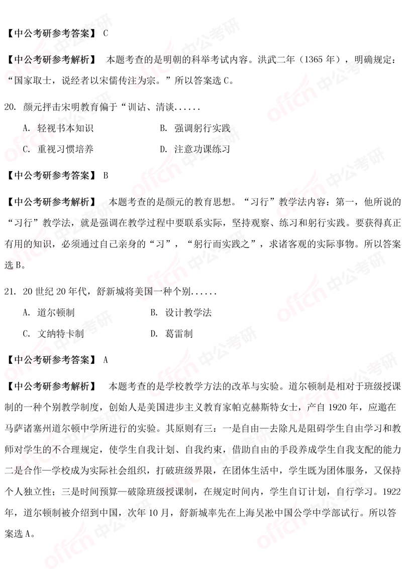 您所在的位置:四川中公考研 > 备考资料 > 考研专硕 > 311教育学职业基础综合试题答案解析-中国教育史