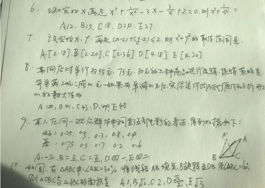 2020考研管综初数6-10试题及答案(网友版)