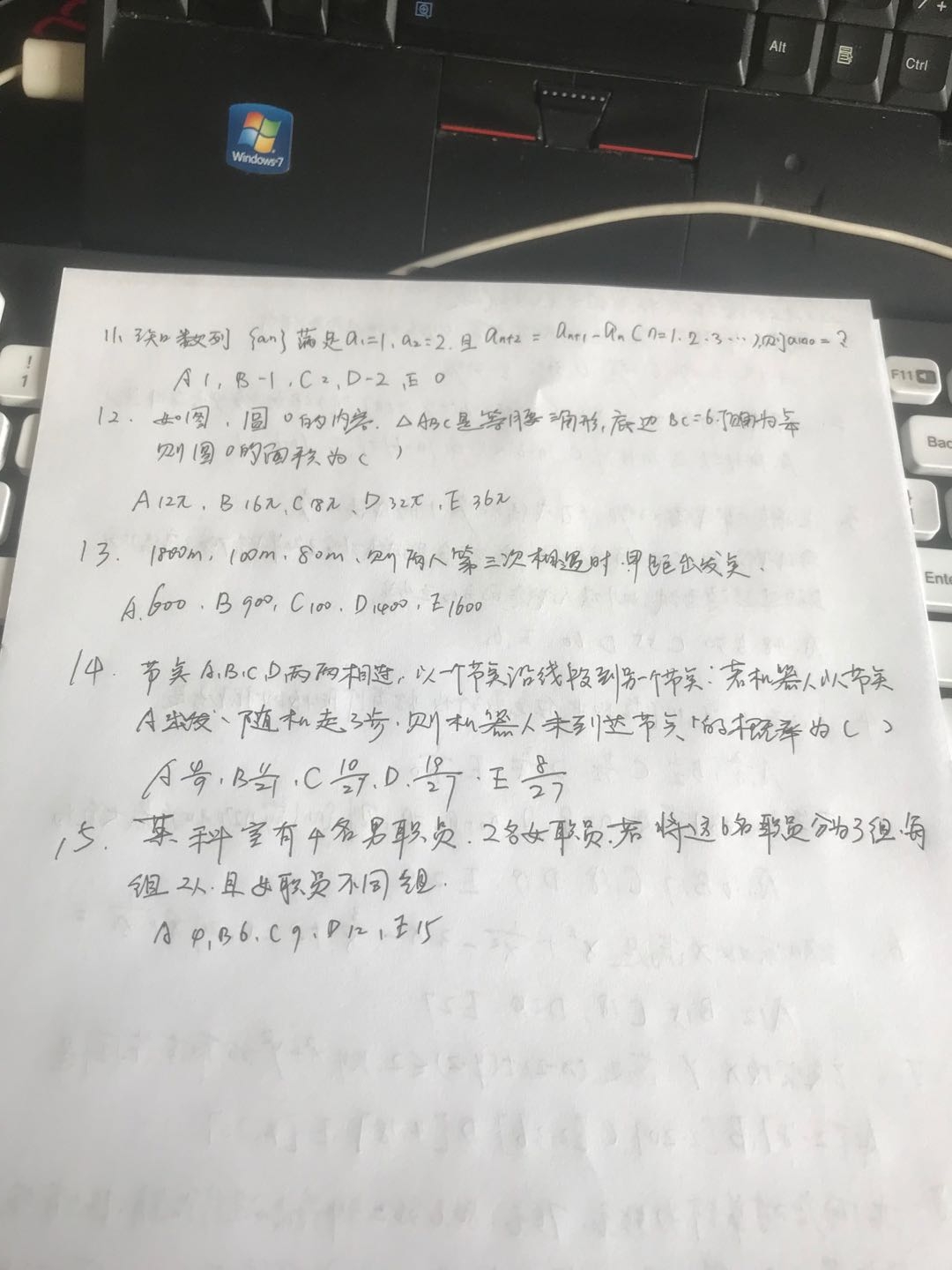 2020考研管综初数11-15试题及答案(网友版)
