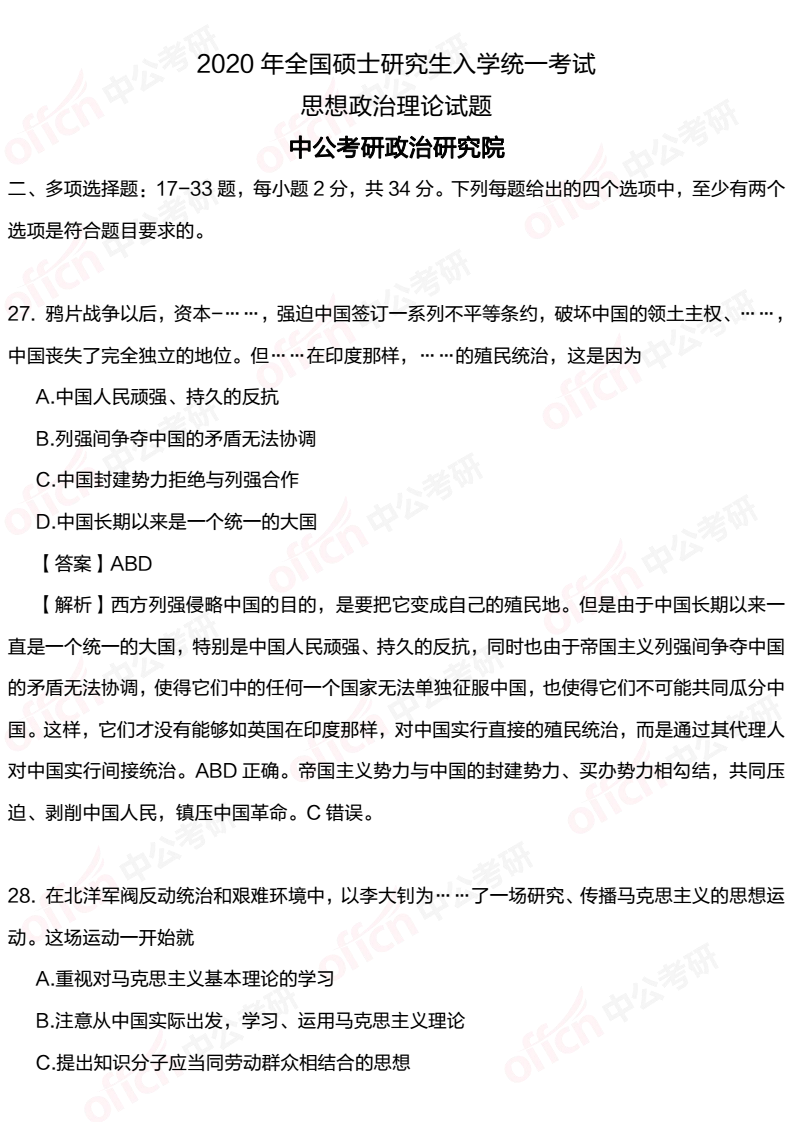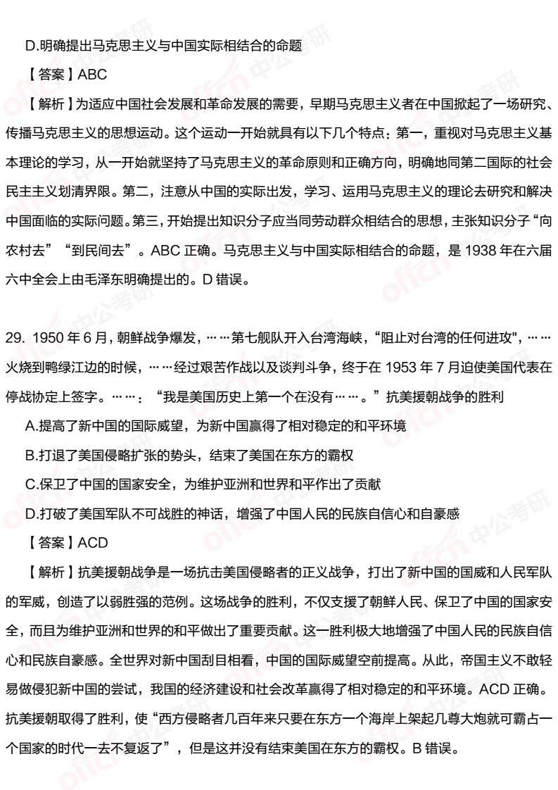2020考研政治史纲多选题27-29试题及答案解析(中公考研版)