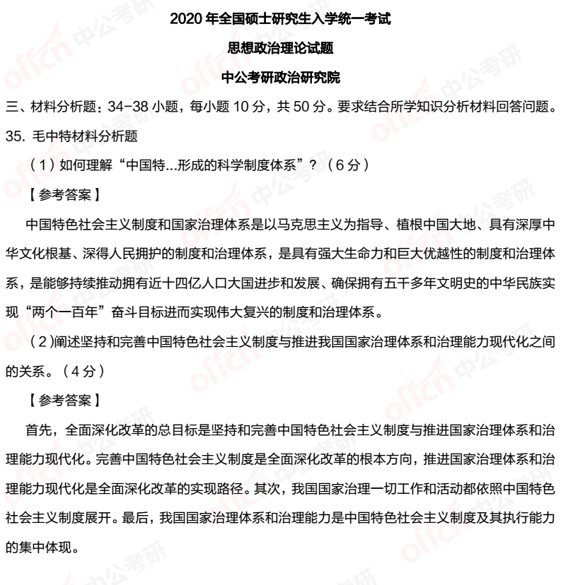 2020考研政治毛中特分析题35题及答案解析(中公考研版)