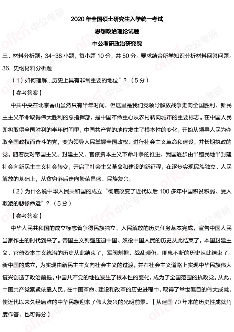 2020考研政治史纲分析题36题及答案解析(中公考研版)