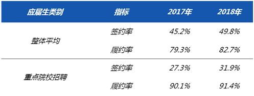 2018年好校毕业生数量再创历史新好,同时较多企业选择缩减校招人数,整体就业形势严峻,应届生在考虑就业时更加谨慎。数据显示,无论是应届生整体,还是重点院校学生,签约率和履约率均有所增加。