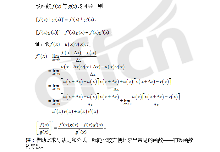 您所在的位置:四川中公考研 > 备考资料 > 考研数学 > 20考研数学:浅析函数的和差积商求导法则及应用