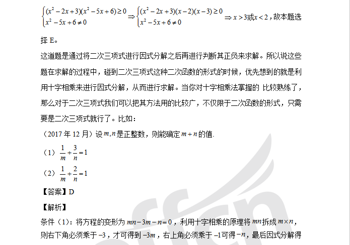 以上是四川中公考研小编为您整理的“20考研管综初数:十字相乘法",预祝每位考生取得好成绩,更多考研常识相关内容尽在四川中公考研数学栏目,中公考研为广大学子推出乐学面授课、VIP一对一等系列备考课程,针对每一个科目要点进行深入的指导分析,欢迎各位考生了解咨询。同时,中公考研一直为大家推出考研直播课堂,足不出户就可以边听课边学习,为大家的考研梦想助力!