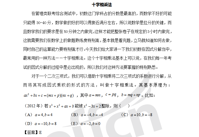 本文是四川中公考研网小编整理的关于“20考研管综初数:十字相乘法"的相关资讯信息,供大家参考。
