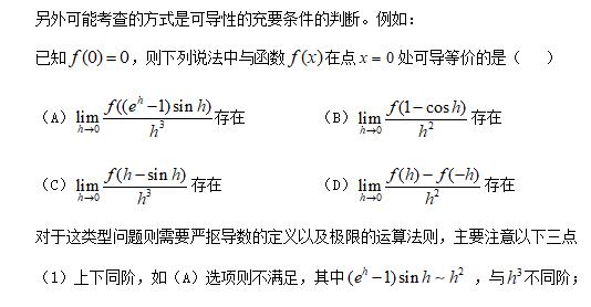 以上是四川中公考研小编为您整理的“2020年考研数学:函数可导性判断 ",预祝每位考生取得好成绩,更多考研常识相关内容尽在四川中公考研数学栏目,中公考研为广大学子推出乐学面授课、VIP一对一等系列备考课程,针对每一个科目要点进行深入的指导分析,欢迎各位考生了解咨询。同时,中公考研一直为大家推出考研直播课堂,足不出户就可以边听课边学习,为大家的考研梦想助力!