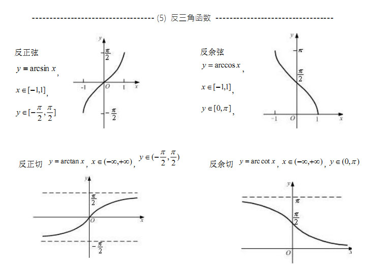 2021考研数学好数夯实基础知识点:反三角函数及图形