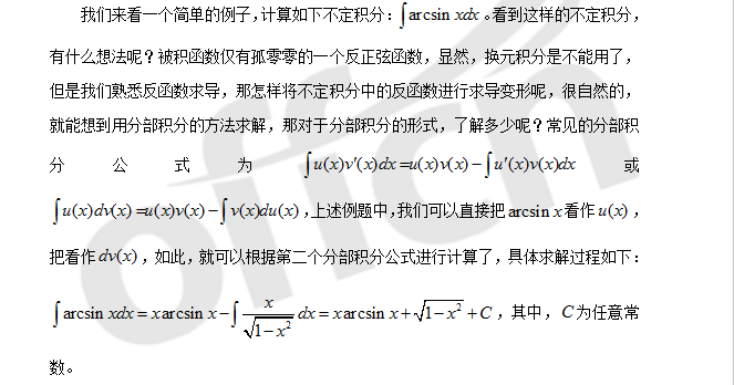 换元积分法和分部积分法是最基本的两种积分方法,我们总是想把各种类型的积分转化为以上熟悉的两种方法。在不定积分的学习中,我们能见到各种类型的被积函数,本章里,我们重点介绍被积函数是反函数的不定积分的求法。