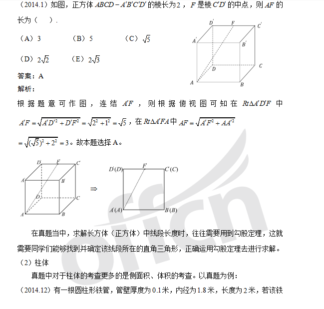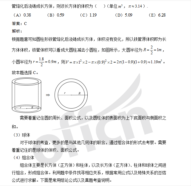 距离考试的时间越来越近了,在最后的冲刺阶段,同学们更应该把握一切可利用的时间去复习。对于空间几何体,相对来说较简单、好理解,是管综历年常考的知识点,几乎每年都要考察一道题,且常常以问题求解的方式考查。