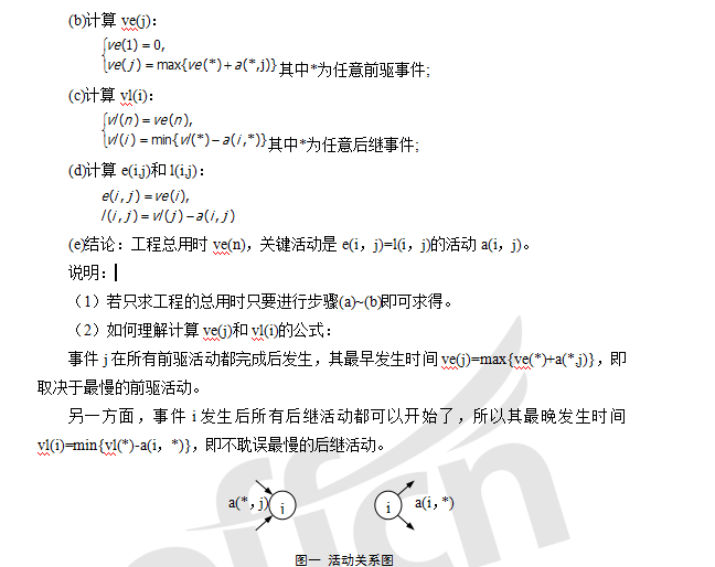 (2)网中的关键路径并不唯一。且对于有几条关键路径的网,只提高一条关键路径上的关键活动速度并不能缩短整个工程的工期,只有加快那些包括在所有关键路径上的关键活动才能达到缩短工期的目的。