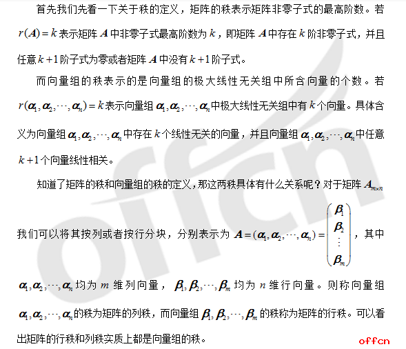 考研数学:浅析向量组的秩与矩阵的秩的关系