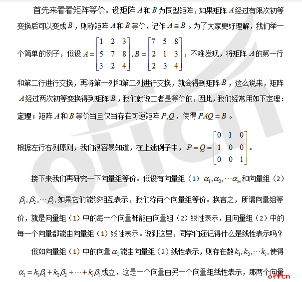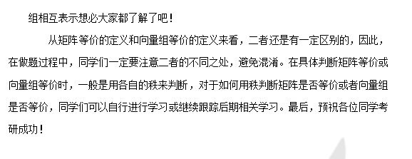 考研数学:浅析向量组等价与矩阵等价的异同