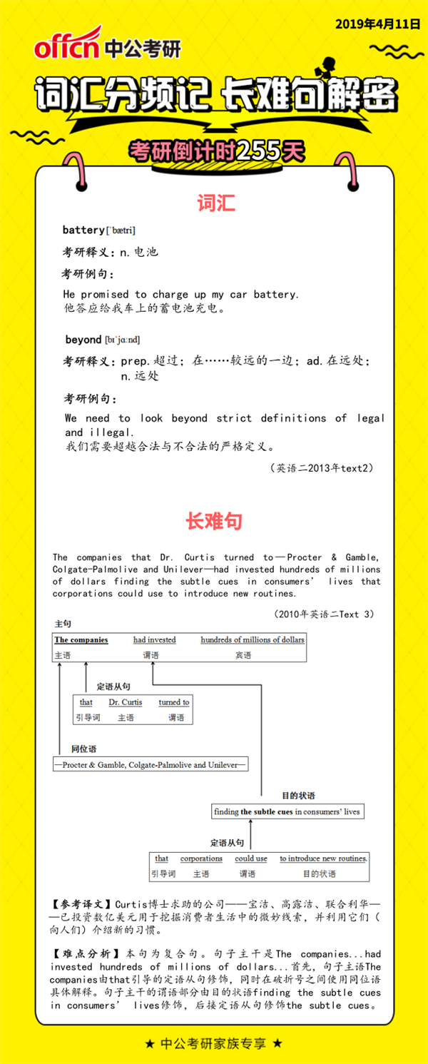 亲爱的各位小可爱们,本文是四川中公考研网小编整理的关于“2020考研英语:英语词汇分频记及考研英语长难句解密0411“,”的相关资讯信息,供大家参考,希望对你们的英语有所帮助。另外每天都要对自己所学的知识学会“复盘”哦。