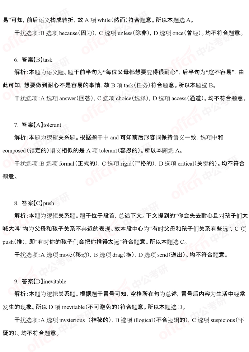 20考研,英语二考试答案四(中公版)