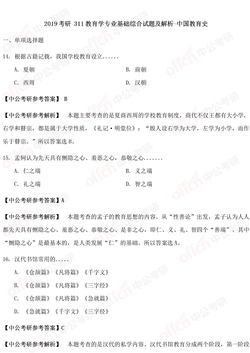 您所在的位置:四川中公考研 > 备考资料 > 考研专硕 > 311教育学职业基础综合试题答案解析-中国教育史