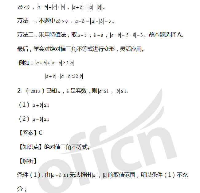 本文是四川中公考研网小编整理的关于“2020考研管综初数:绝对值讲解(绝对值三角不等式)”的相关资讯信息,供大家参考。