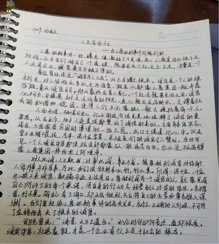 如本篇第二段分论点后可修改为:一个人若不讲诚信,可能在短时内不被人发现,进而获得暂时的人际交往;但是一旦被人发现他失信于人,不能一诺千金,经常出尔反尔,那么就没人愿意与之为伍,最终其也会落得如丧家之犬,无生存之根。同理,若是一个企业不讲诚信,可能会在短时期内获利,但是经常如此,可能最终落得被同行唾弃,甚至破产的局面。三鹿集团不讲诚信,最终自食恶果,既害人又害己。相反,海尔集团董事长怒砸不合格产品终获同行的尊重,也赢得了消费者的好评。因此,讲诚信能够让一个人或企业在前进的路途中减少崎岖,道路更加通畅。