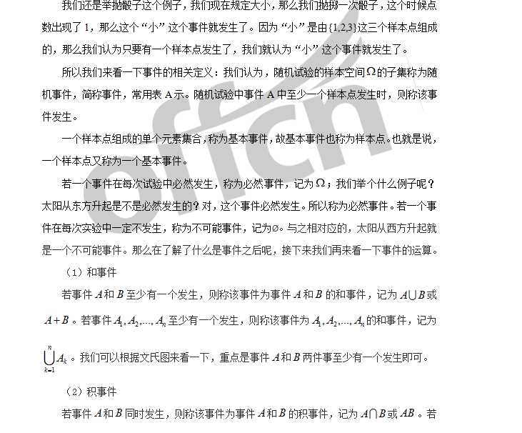 同学们,这节课我们来讲解一下每年的一个必考内容—概率,这是考试的一个重点也是一个大家掌握不是很好的一个知识点,所以大家在学习的时候要格外的注意。那么在了解概率之前呢,我们需要了解一个小的知识点,就是事件及其简单运算。我们同样是根据例子出发来进行学习。