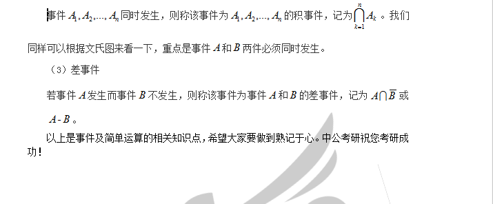 您所在的位置:四川中公考研 > 备考资料 > 考研专硕 > 2020考研管综,管综初数之事件及简单运算