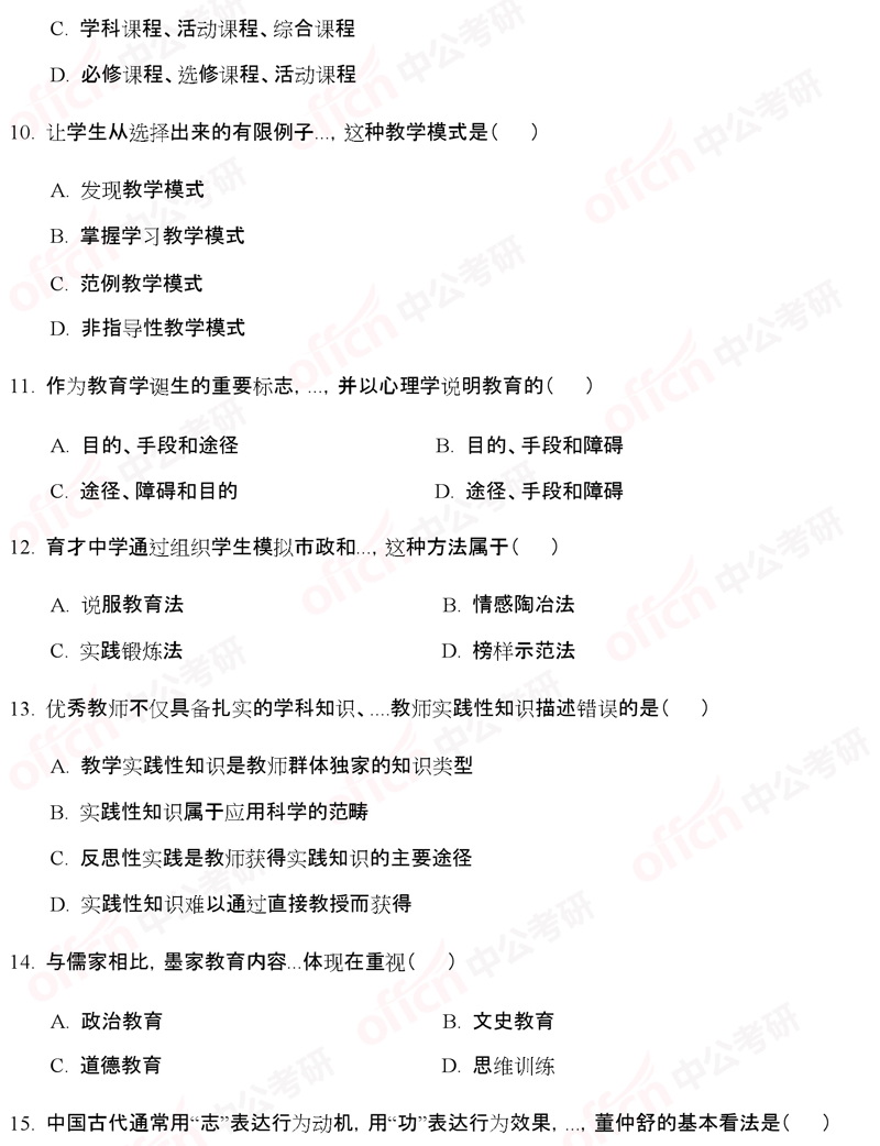 您所在的位置:四川中公考研 > 备考资料 > 考研专硕 > 2020考研,311教育学基础综合试题单选题3(中公考研版)