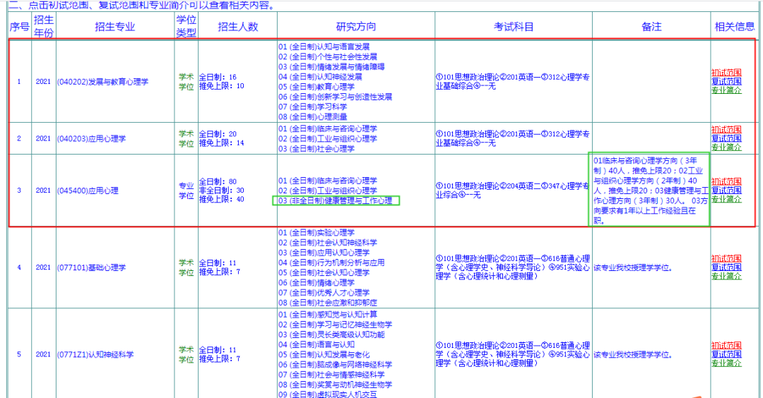 注:应用心理的03方向非全日制要求有1年以上工作经验且在职。