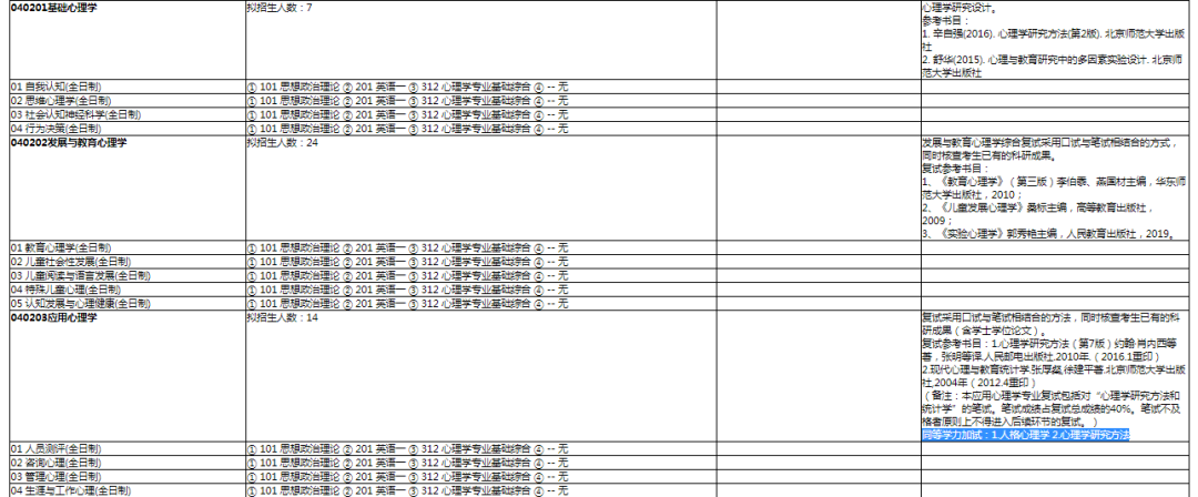 注:同等学力考生考学硕040203应用心理学和045400应用心理时,复试需要加试2门专业课