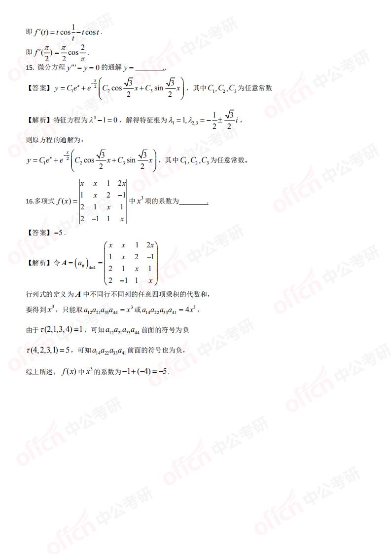 2021考研数学二填空题试题及答案解析(中公考研版)
