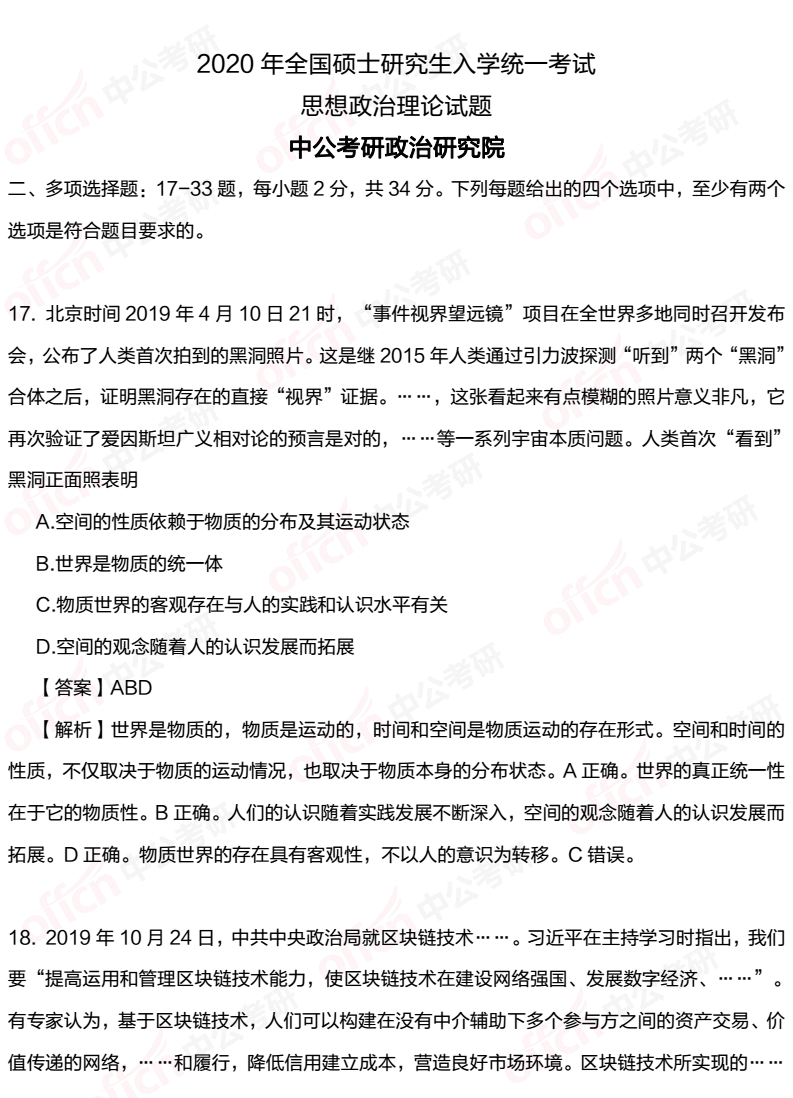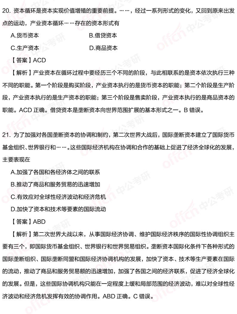 2020考研政治马原多选题17-21试题及答案解析(中公考研版)
