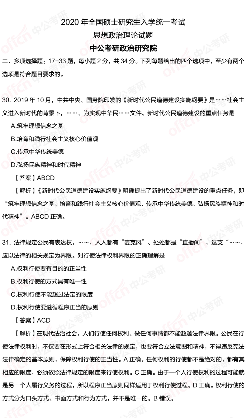 2020考研政治思法多选题30-31试题及答案解析(中公考研版)