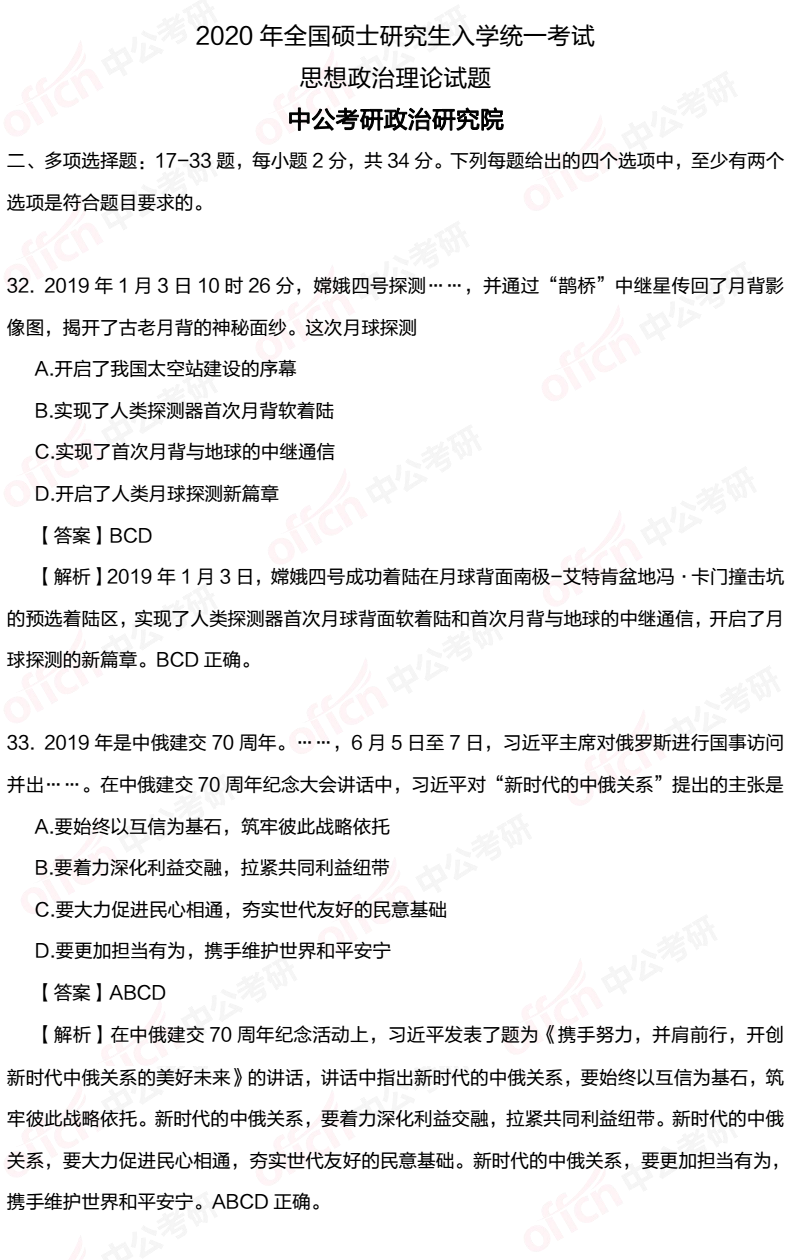 2020考研政治时政热点多选题32-33试题及答案解析(中公考研版)