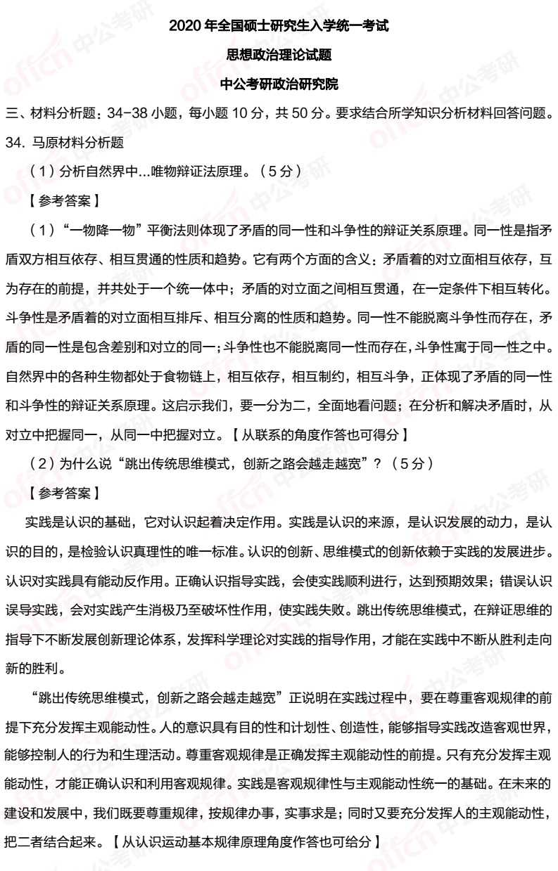 2020考研政治马原分析题34题及答案解析(中公考研版)