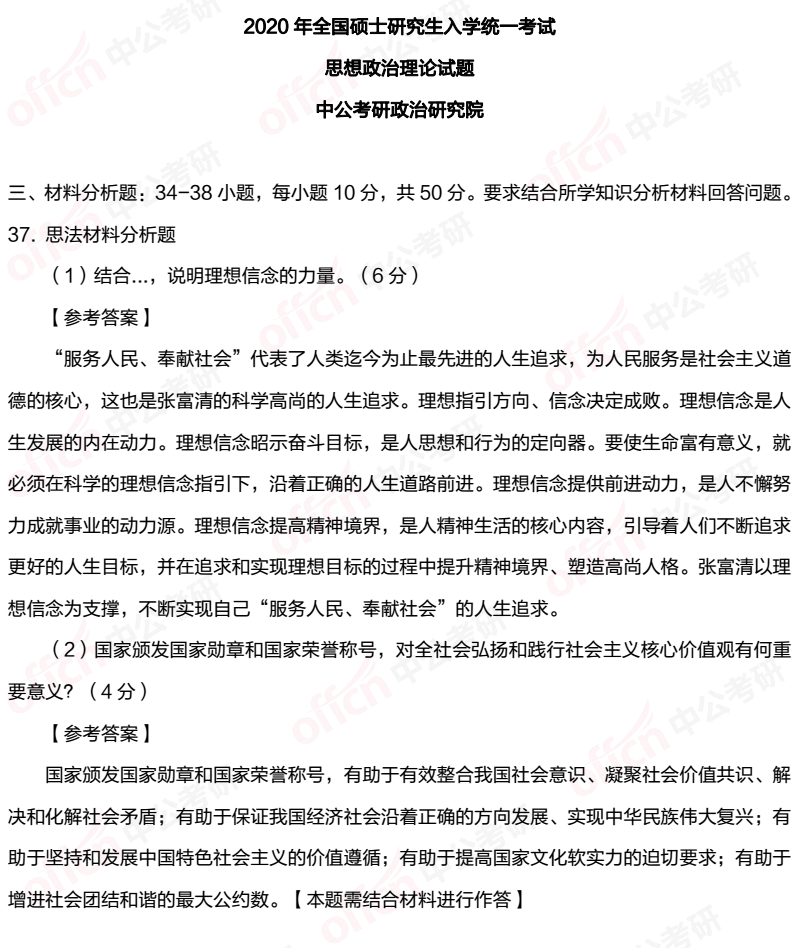 2020考研政治思法分析题37题及答案解析(中公考研版)