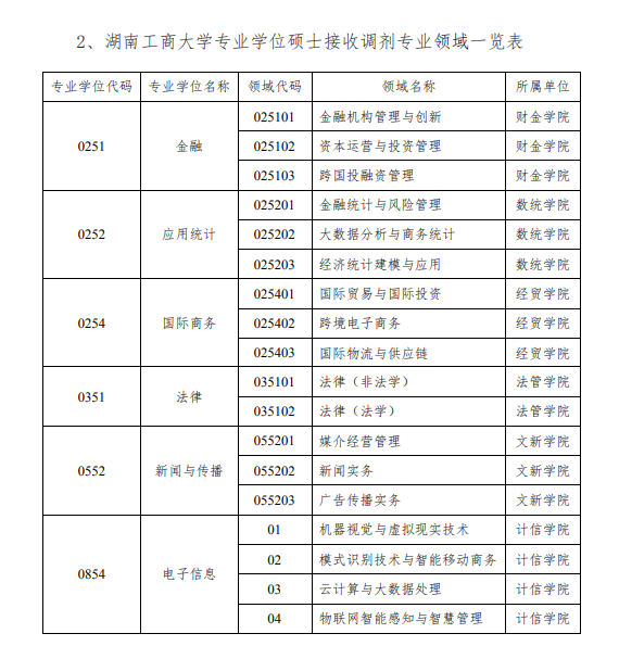 1、湖南工商大学学术学位硕士接收调剂学科专业一览表