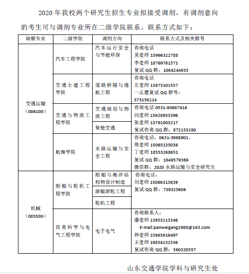 原标题:山东交通学院2020年硕士研究生拟接收调剂联系方式公告