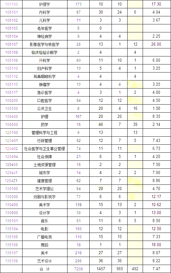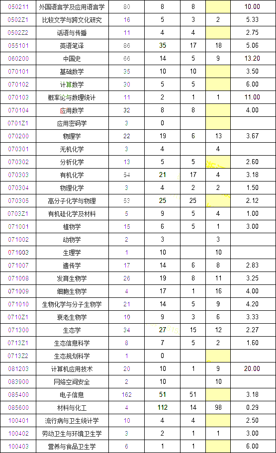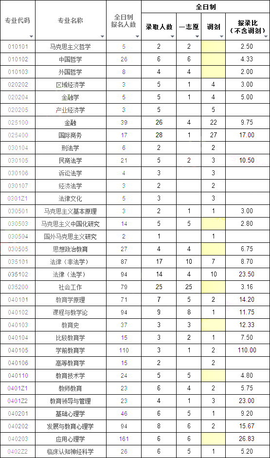 调剂一列:黄色代表录取人数中没有调剂考生,即录取的都是一志愿考生