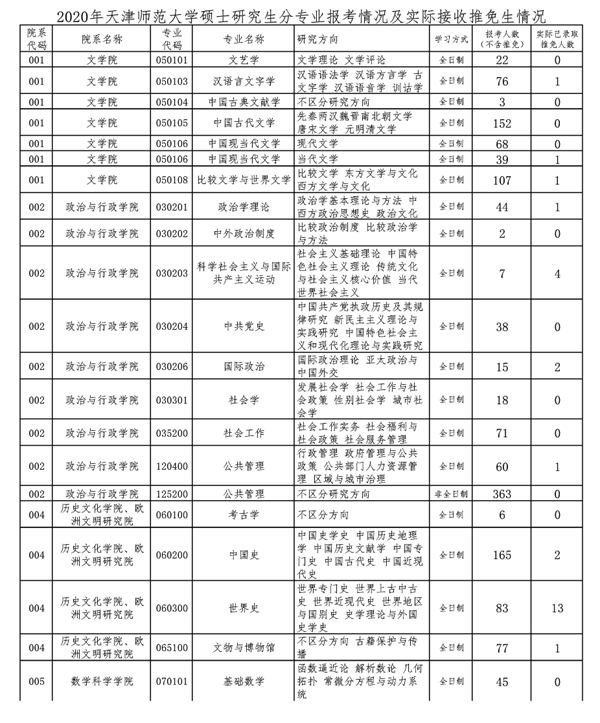 原标题:2020年天津师范大学硕士研究生分专业报考情况及实际接收推免生情况